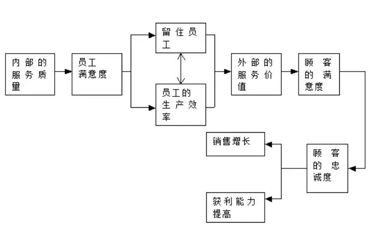(1)顾客忠诚促使销售增长(复购率提升)和获利能力提高(品牌依赖度提升);顾客的满意度是顾客忠诚度的基础,而要使顾客满意,就必须提升“服务价值”;外部服务价值的提升,主要依靠“内部服务质量”的提升,从而实现“员工满意”“员工忠诚”(留住员工)以及员工生产效率的提升,这就是“内部营销”。由此可见,创造公司利润的过程并不是一种简单的“策略行为”,更应该是一种具有系统化、逻辑化、流程化的战略行为。